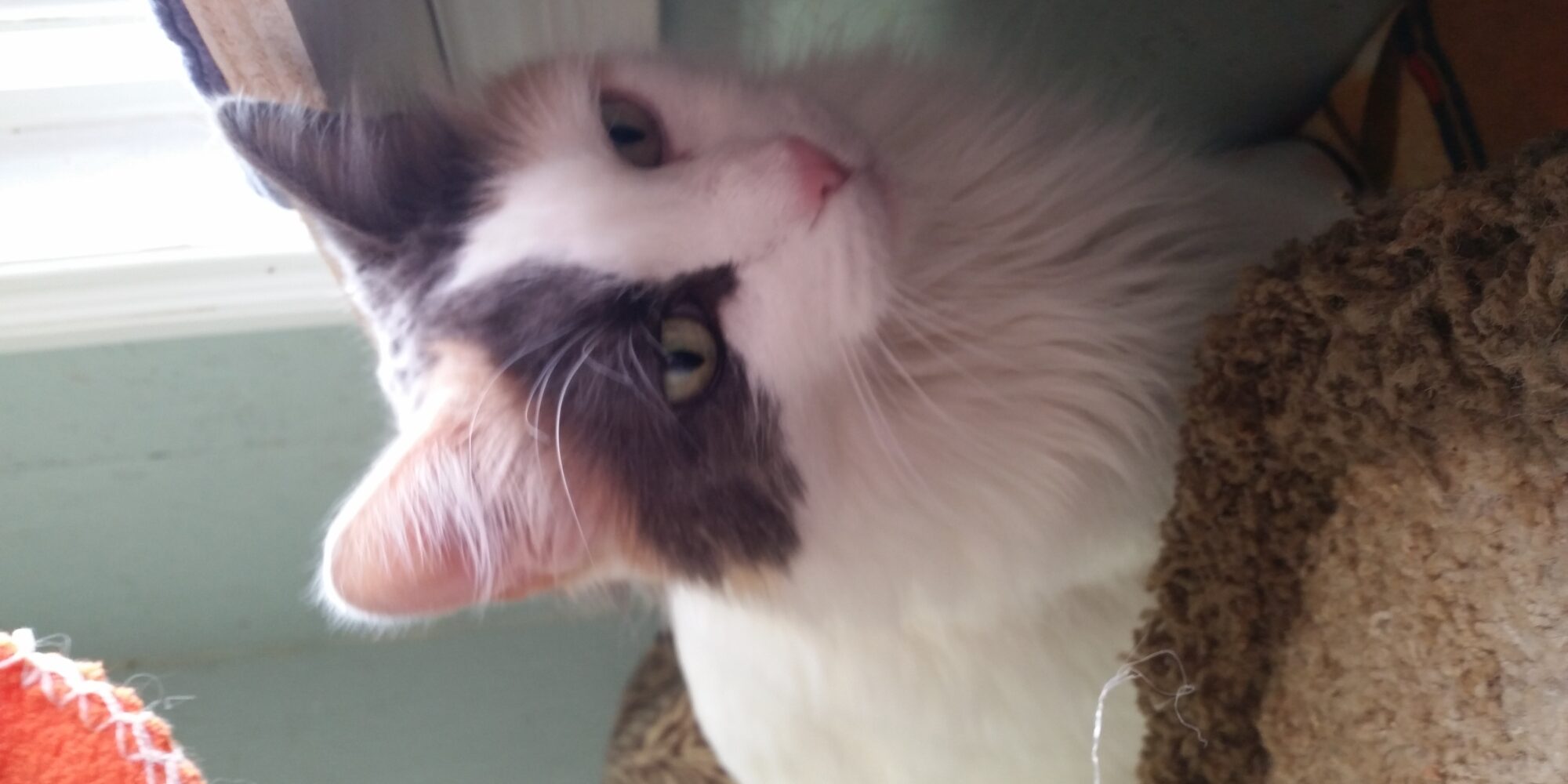 patches...12 yr old grumpy calico cat from nelson...she is in the medical room.