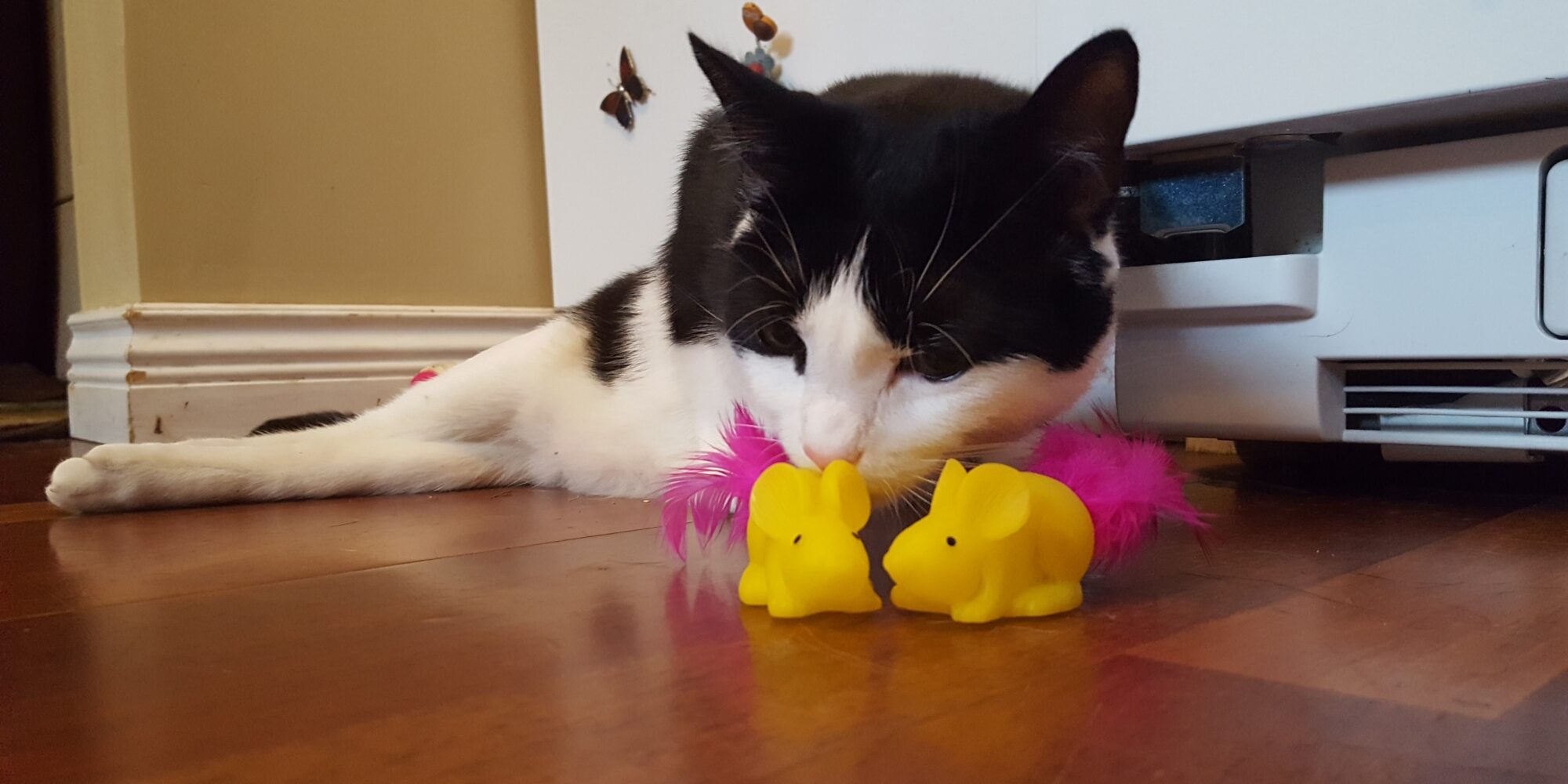 I don’t know who you are but I want to say thank you! We met at the pub night fundraiser at the end of April, where we were both bidding on a basket of cat goodies. I told you all I was interested in were the little mice, I said that Addy would love them. You won the silent auction basket and sometime this past Sunday you dropped off the little mice from the basket at SAINTS, for Addy. So, from both Addy and I….THANK YOU! How incredibly thoughtful.