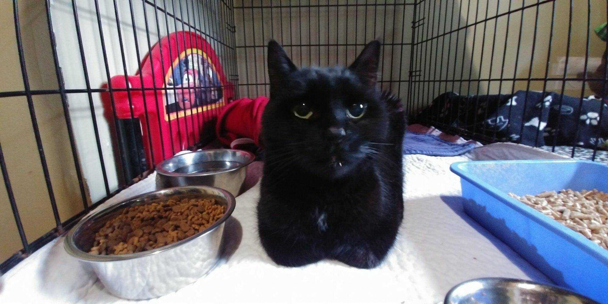 He is a 13 yr old black beauty with a bad habit of spraying. he is currently hanging out in a transition cage and is bored so i said he could have his own blog to keep him occupied.