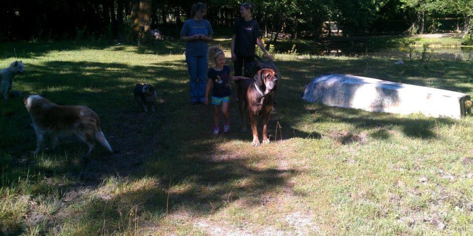 In the lower field there is a boat. Its upside down, just kind of...there. Sometimes the pond water is high enough that the boat could damn near float (if it were right side up that is) and sometimes the boat is completely out of the water, beached, dry. We walk past the boat multiple times every day and we have for years. Years! How many dogs, horses, cows, pigs, llamas have walked past it, climbed up on it, jumped over it, ran around it (probably peed on it haha)? Can you imagine all the animals that boat has met? All the folks walking along with said animals? What has that boat seen? It has seen every single time Mystic chases the heron from the pond (don't worry, the heron is not in any real danger, Mystic can't sneak up on anyone). It saw that time Ellie played Hide and Seek (she won that one, btw). It saw Allie when she would lose herself and become hyperfocused on swimming and absolutely refuse to come out. Today it saw Vera barreling through the pond like she does every time (that dog is a bull in a China shop!) It saw the house dogs doing their morning lap with Lynne (and whatever that thing she was wearing on her head was? In Lynnes defence, it was freaking pouring all day, but I still have no idea what that was). That boat must have stories to tell. I know I've sat on it, had conversations on the phone it would have overheard. How the hell did that boat get there anyways? Should we name it?