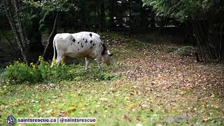 Emily grew from a tiny sick calf in to a magnificent full sized Holstein beauty. Her confidence is astounding - never afraid to loudly call out for what she wants (usually food), and never falling short of getting just exactly as much as she wanted. Humans gladly do her bidding and it's kind of nice too think that that's all Emily will ever know of humans, as it's unlikely she remembers her brief time as a baby at a meat auction (hopefully).